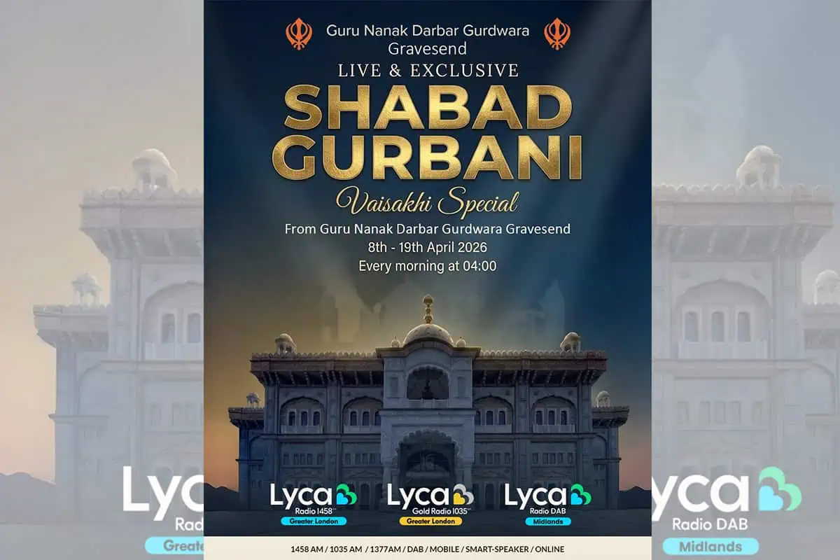 Lyca Radio has confirmed a partnership with Guru Nanak Darbar Gurdwara, Gravesend, to broadcast live Shabad Gurbani throughout the Vaisakhi period. The coverage will run from Wednesday 8th April to Sunday 19th April, marking the first time the station has expanded its Sikh devotional programming to this extent. Daily broadcasts will begin at 04:00, with the output also carried on Lyca Gold and Lyca Radio – Midlands.
